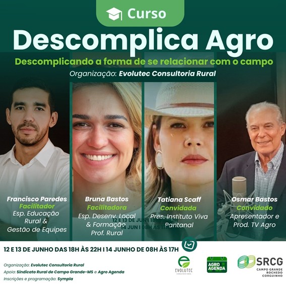 O setor agropecuário vive um momento de transformação, onde a informação, a escuta ativa e a qualificação de equipes são essenciais para alcançar resultados sustentáveis. Nesse contexto, o curso Descomplica Agro, promovido pela Evolutec Consultoria Rural, surge como uma iniciativa para capacitar profissionais que buscam liderar essa mudança no campo. O evento será realizado entre os dias 12 e 14 de junho, no Sindicato Rural de Campo Grande.