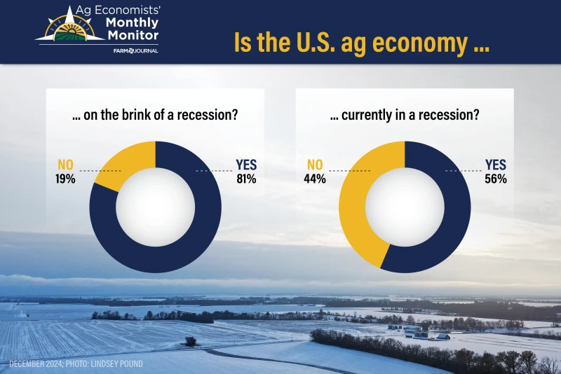 O Farm Journal pediu aos economistas que opinassem sobre se eles achavam que a agricultura está atualmente em recessão. Os economistas na pesquisa anônima disseram: