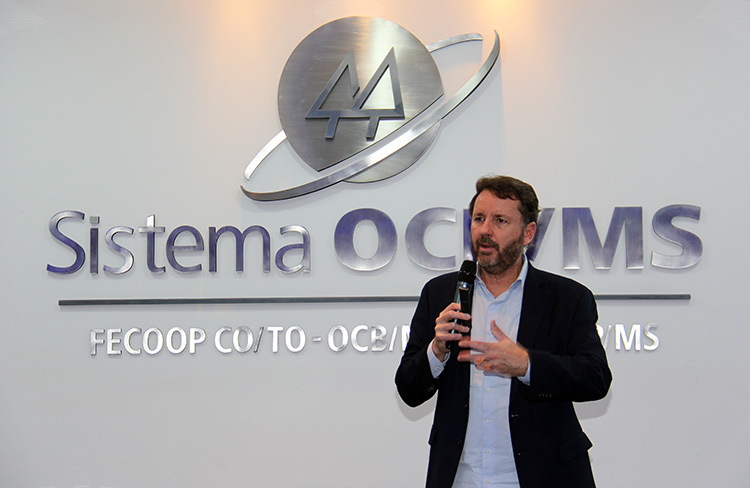 Marcos Fava durante o Workshop “Rota & Cooperação: Caminhos e Desafios do Cooperativismo”. Foto Wisley Torales
