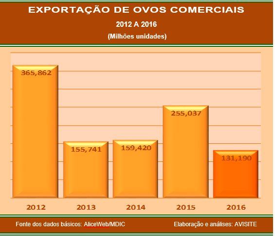 Angola, por sua vez, adquiriu 190 milhões de ovos em 2012 e era o maior importador do produto brasileiro. De lá pra cá, veio diminuindo fortemente suas aquisições e nada importou no ano passado.